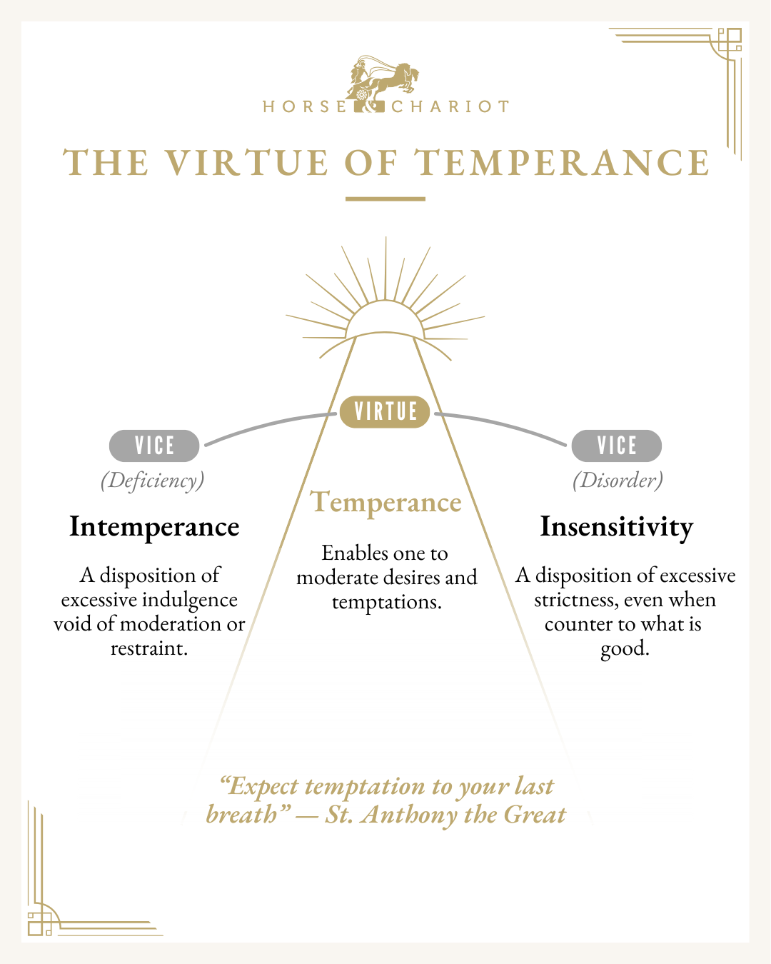 Temperance is forged through struggle. Temptation becomes the training ground where self-denial strengthens the soul.